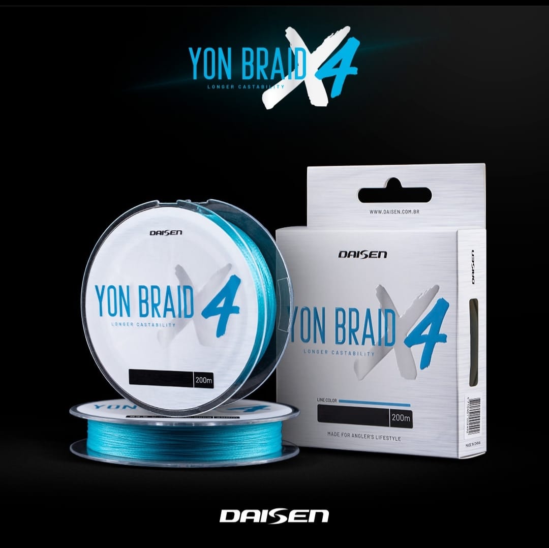 A linha de multifilamento YON BRAID X4 da Daisen é uma excelente opção na relação custo X benefício, com marcação aos 100 metros de linha para melhor aproveitamento. Produzida com as melhores tecnologias, possui um trançado mais forte, altíssima resistência à tensão, com alta impermeabilidade, sem memória e seu coeficiente de elasticidade é próximo de zero, o que torna as fisgadas muito mais certeiras.