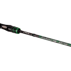 Possui blank confeccionado em carbono IM10 reforçado com Carbon Tape em “X” (externo) e cabo bipartido em EVA com acabamento em alumínio, acompanhado por um reel seat com elegante acabamento em black piano, além de ponteira anti loop (anti laçada) em óxido de alumínio.